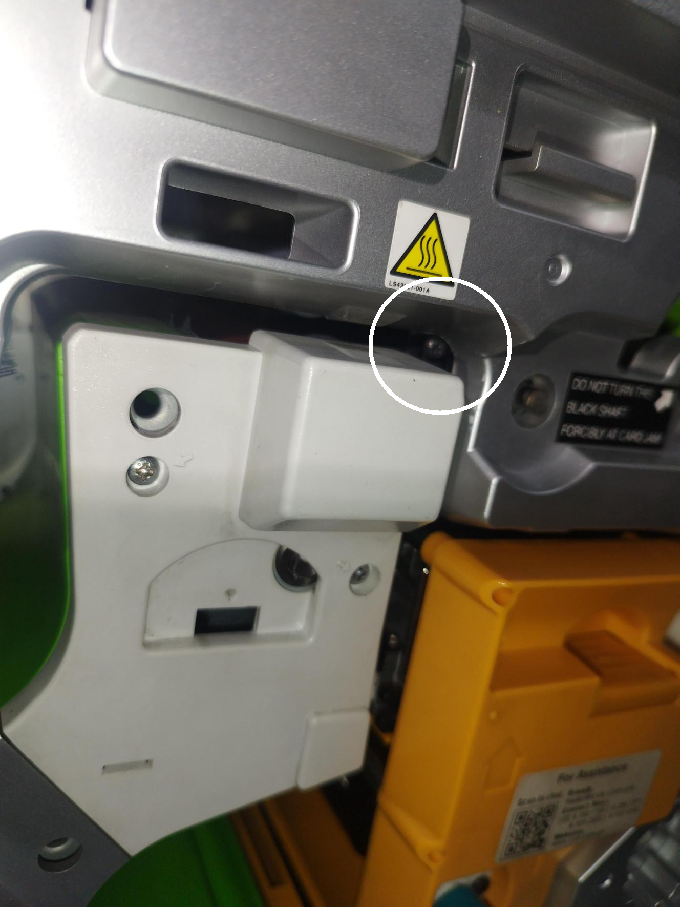 2. Look for a screw on the upper right corner of Retransfer cartridge slot.