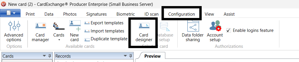 1. Open Card Designer under Configurations Tab
